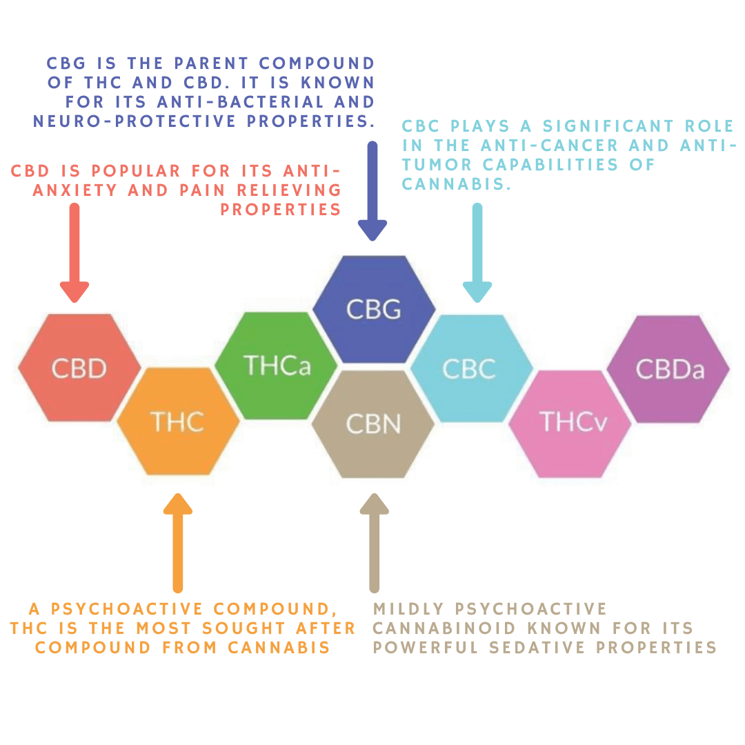 Learn about Nala cannabinoids, terpenes, and adaptogenic ingredients used in our products in the graphics below